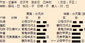 悟道解析:金寨算命大师重点提示:(一)【卦象分析】:主卦《水风井》,变卦《水天需》。主卦水生木,变卦金生水。整体循环就是金生水,水又生木,形成连环相生的结构。卦气流通良好,又逢财爻发动,表示:既得财...