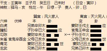 悟道解析:赫章算命大师重点提示:(一):【卦象分析】:主卦《风火家人》,变卦《天火同人》。整体卦象,木生火,火克金。既有来源,也有去处。表示的是:既有能力,又有赚钱的渠道。财旺有库,既能生财,也能...