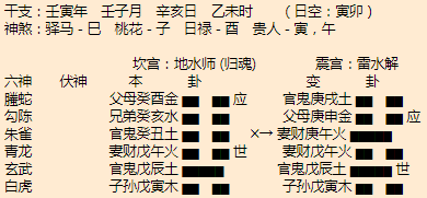 悟道解析:商城算命大师重点提示:主卦《雷水解》,变卦《地水师》。世爻落入财爻,子孙又来生财,表示明年的财富,是增加的趋势。也表示生财有道,有来钱的方式和根源。而且具有持续性。卦象非常吉祥。【明年整...