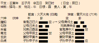 悟道解析:册亨算命大师重点提示:(一)【卦象分析】主卦《火天大有》,变卦《雷天大壮》。主卦,火克金;变卦,金克木。卦象表示的是:先遇困难,后取财富。《火天大有》卦,有如日中天的意思,《雷天大壮》卦...