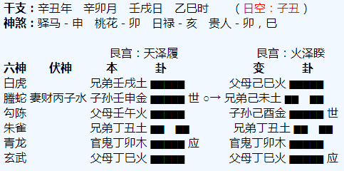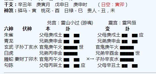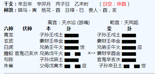 悟道分析:都匀算命大师1、命主子女星临腾蛇发动,化元神回头相生,这个确实是怀孕的信号。2、临腾蛇,显示命主腹中孩子确实有点问题,再加上主卦天泽履卦,变卦火泽睽卦,不过变卦信号倒不是太差,说明情况不至...