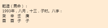 悟道解析:万源算命大师(一):命主93年生人,生肖属鸡,剑锋金命。此八字:壬水生于酉月,秋金生水,旺而得生,命局之中,只有金水相生。五行缺木,缺火,也缺土,虽然缺少三种五行,但八字组合不杂,金水相生...