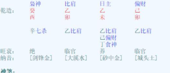 悟道解析:阆中算命大师一、命主总体命局以及财运分析:1、日主乙木偏旺,比肩重重为忌神,需要用官杀来旺身,食伤财星来泄身,所以第一用神是金,第二用神是火和土。忌神为木和水。2、原命局两个偏财,没有正财...
