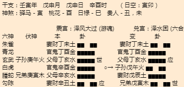 悟道解析:梨树算命大师1、变卦六合,官动受克制,还是会大概率符合的。但是这次闹的也比较凶,主卦泽风大过,彼此伤害都很大。2、官动化忌神回头相克,这个是感情动荡,目前一直到九月份,你的感情都是分分合合...