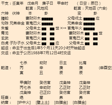 悟道解析:辉南算命大师1、命主的卦上应身发动,动化子水酉金回头克制官星卯木,这个是非常不吉利的,也就是这个变动对命主的事业和工作以及夫妻感情都是不吉利的。2、卦上命主的破财星发动,显示命主此次变动还...