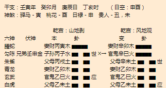 悟道分析:蓝山算命大师1、命主主卦山地剥,变卦风地观,代表着命主需要冷静观察,千万不要盲目,这也是我答复比较慢的原因。2、命主的旺财星发动,动化官鬼星消耗,显示命主这个项目还是比较有市场的,但是目前...